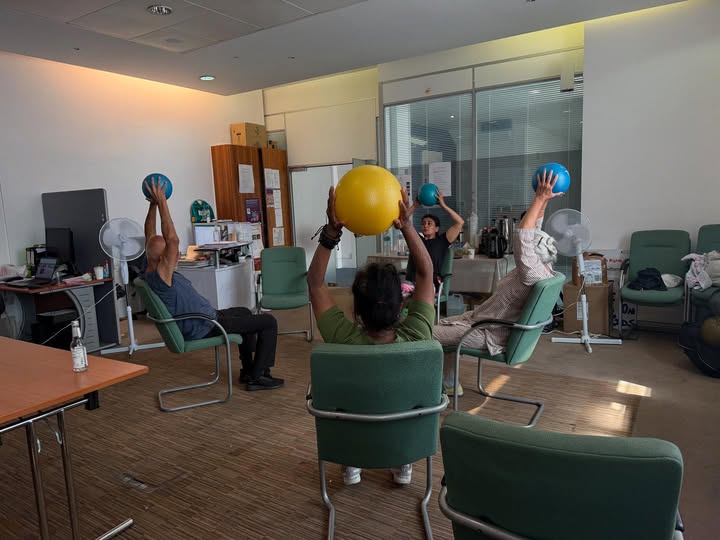 Strength and balance class at Town Hall Every Wednesday we host a small group for a strength and balance class aimed at people with balance and mobility problems. The sessions are delivered by Zarife Mohamed and involve a surprisingly intense armchair based workout. (fb)