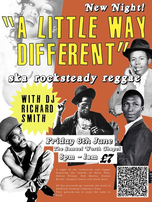 Join us on Friday 6th June 2025 for an unforgettable night of reggae, ska and rocksteady in the Samuel Worth Chapel 🎼 DJ Richard Smith, known for his deep roots in the reggae scene since the 80s, will be spinning classic tracks from legends like Alton Ellis, Delroy Wilson, Ken Boothe, Bob Marley, Dennis Brown, and Gregory Isaacs. Experience the vibrant sounds of 60s, 70s, and 80s Jamaica in the unique setting of our historic chapel 🇯🇲 Book your ticket now: https://gencem.org/event/a-little-way-different-with-dj-richard-smith-2/ (fb)