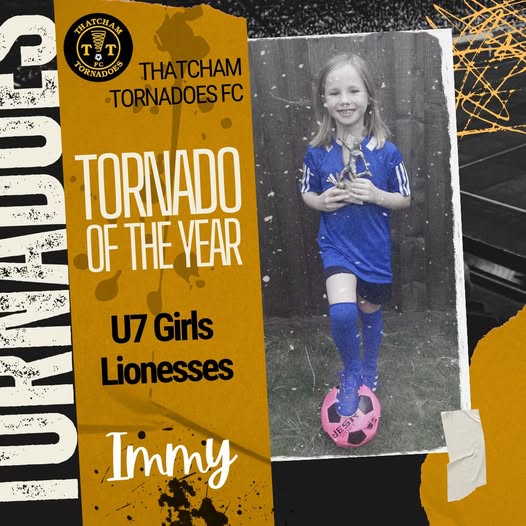 Over the next six weeks or so, our Managers and Coaches will hold their end of season get-togethers and reveal their Tornado of the Year. U7 Girls Lionesses are the first team to present their trophy. "Immy can read a football match better than any U7 I have seen before. This combined with an outstanding work rate makes her one of the outstanding defenders in the league. Although she doesn't like to admit it, she is also a fabulous goalkeeper!" Many congratulations, Immy!! 🖤💛🌪️⚽🏆🦁 #thatchamtornadoes #grassrootsfootball #footballfamily #WeAreTornadoes #thatcham #WestBerkshire #girlsfootball #ThisGirlCan #lionessesinspired #LetThemPlay #TOTY (fb)