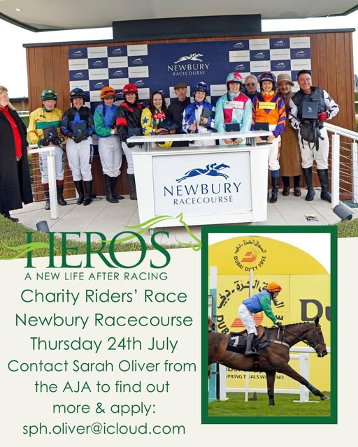 ✨HEROS CHARITY RIDERS’ RACE✨ A place has become available - act fast before it’s gone!! Always dreamt of passing the winning post at one of Britain’s premier racetracks? This is the AMAZING opportunity for you to realise your dream, all whilst supporting an AMAZING charity. ❓What you need to know: 📆 Thursday 24th July 📍 @newburyracecourse 🏇12 riders 🚩Run over 1m2f with a flag start ⚖️Riders’ to carry level weights of 11 stone 7lbs 🐎Open to flat horses rated from 0-75 🏇National Hunt horses can run subject to clearance from HEROS Charity and Newbury Racecourse (Point-to-Point horses are not eligible to run) 🐎Riders are responsible for sourcing their own horse to ride 🏇Unlicensed riders without previous recent race riding experience must attend, either at least 3 training sessions for assessment with a licensed Jockey Coach or an assessment day at the British Racing School or Northern Racing College. 💷There is a minimum requirement of £1,500 to be fundraised by each rider for HEROS Charity Find out more and download the race conditions ➡️ https://heroscharity.org/events/ To find out more and to apply contact Sarah Oliver from the AJA 📧 sph.oliver@icloud.com #HEROS #HEROSCharity #SupportHeros #HEROSNews #lovetheracehorse #Thoroughbred #ANewLifeAfterRacing #ChangingLives #charityridersrace #charityrace #newburyracecourse (fb)