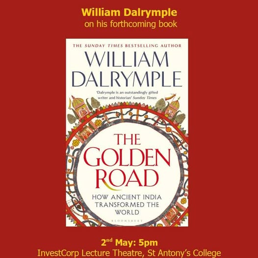 On 2 May we will be hosting William Dalrymple, who will be talking about his upcoming book 'The Golden Road'. This book looks at the ways Ancient India transformed the world. The talk takes place at St. Antony's College at 5pm. Tickets are free but must be booked in advance. For more details and to book your ticket please visit https://www.eventbrite.com/e/william-dalrymple-the-golden-road-tickets-881320361927. This is an in-person event only. (fb)