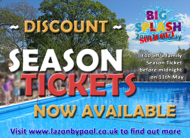 📣📣📣 Discount Season Tickets now available! 📣📣📣 (£10 off a Family Season Ticket if purchased before midnight 11th May) Big Splash 2pm Saturday 10th May 2025 https://www.lazonbypool.co.uk/book-swim/#ST (fb)