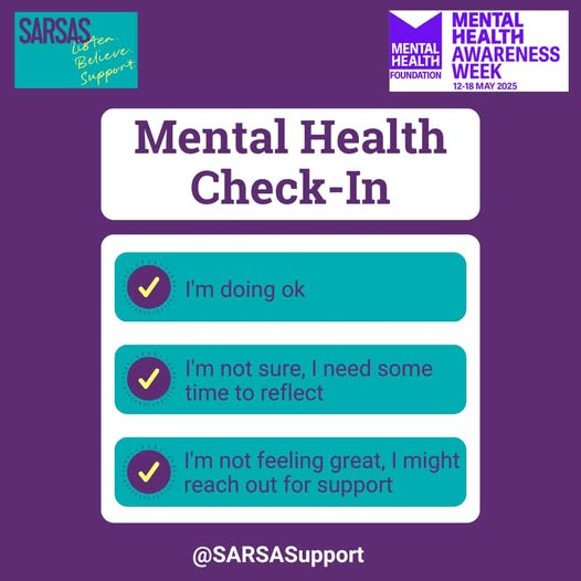 How are you doing this week? If you'd like some extra support, our Helpline and Live Chat are both open this evening from 6pm – 8pm 📞0808 801 0456 📱sarsas.org.uk We also have a range of self-help guides for victim-survivors and friends and families to read through here: https://loom.ly/W_LNU9A #MentalHealthAwarenessWeek2025 (fb)