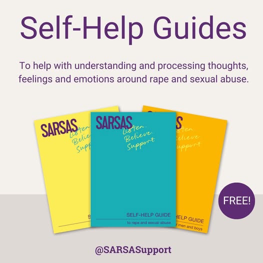 Have you seen our free self-help guides? We have a range of guides that can help with understanding and processing your thoughts, feelings and emotions around rape and sexual abuse. 📘 All genders 👉 https://loom.ly/25kyr5g 📙 Men and boys 👉 https://loom.ly/fwLrYrI 📗 Women and girls 👉 https://loom.ly/xUnLp-Q If you, or someone you work with, has experienced any form or sexual violence, they're a useful tool to dip in and out of. #Trauma #TraumaResponses #SelfHelp #SelfCare #SupportSurvivors (fb)