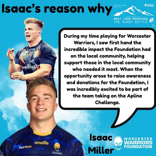Hear from Isaac Miller and his reason for taking on the Move Your Mountain Challenge. Isaac spent 4 seasons at Worcester Warriors and during his time joined the foundation on many occasions supporting the foundation with many of our projects! To support Isaac and his former team mates on their challenge follow the link https://www.givengain.com/project/worcester-warriors-raising-funds-for-2-causes-108985 Raising important funds for both The Foundation & Restart #CecilsLegacy The Rugby Players' Association (fb)