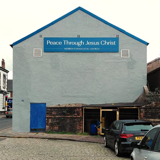 Admiring the fresh paint and brand new sign behind Hebron now that the scaffolding is down....and praying that it has an impact on those walking by every day 🙏 #peacethroughjesuschrist (fb)
