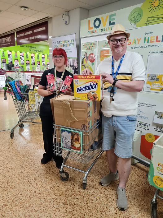 A huge thank you to Rosie and the team at Asda Spondon! 🛒 We collect from Asda twice a week, and we’re so grateful to the staff and customers for their continued support of Derby City Mission. Your kindness helps us keep the Community Café and Shop running for those who need it most. ❤️ #CommunitySupport #ThankYou #DerbyCityMission (fb)