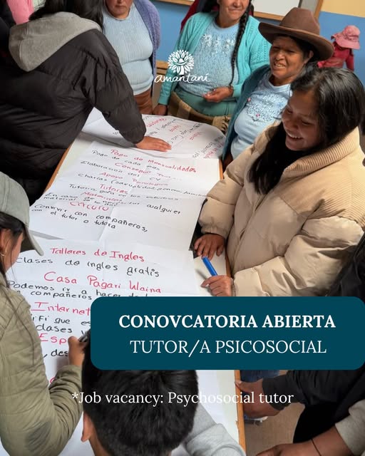 [CUSCO] En Amantaní creemos que la educación transforma vidas. Por eso, Hoy abrimos convocatoria para sumar a una persona comprometida, empática y con vocación de servicio a nuestro equipo de tutores/as en Cusco. Como tutor/a, serás un pilar clave en el acompañamiento educativo y emocional de nuestros/as jóvenes del Programa de Becados. Buscamos a alguien con formación en educación, psicología, trabajo social o afines, con sensibilidad intercultural y muchas ganas de aprender junto a ellos/as. 📍 Ubicación: Cusco 📅 Inicio: 16 de junio 📩 Envía tu CV y carta de motivación a: info@amantani.org.pe Para más información, visita el link en bio de nuestro Instagram. ¿Te animas a ser parte del cambio? #Cusco #Convocatoria #Educación #Tutoría . . . [CUSCO] At Amantaní, we believe education transforms lives. That’s why we support young people from the Andes and Amazon on their journey toward a future full of opportunities 🌱📚 We are now hiring a committed, empathetic person with a strong vocation for service to join our team of tutors in Cusco. 💬 As a tutor, you’ll play a key role in the educational and emotional support of students in our Scholarship Program. 🎓 We’re looking for someone with a background in education, psychology, social work or related fields—someone with intercultural sensitivity and a true passion for learning with youth. 📍 Location: Cusco 📅 Start Date: June 16 📩 Send your CV and motivation letter to: info@amantani.org.pe For more information, visit our link in bio on Instagram. Are you ready to be part of the change? #amantani #cusco (fb)