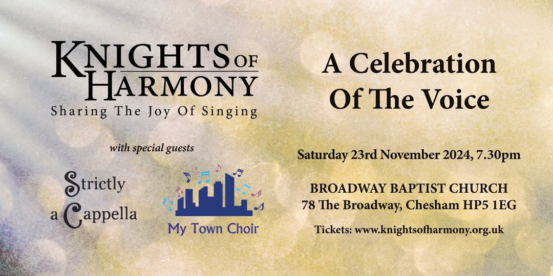 We're greatly looking forward to what is going to be a spectacular show tomorrow evening with special guests Strictly a Cappella and Chesham My Town Choir. 🎶 Have you got your tickets yet? Venue: Broadway Baptist Church, Chesham Date: Saturday 23rd November 2024 Time: 7.30pm Tickets 🎟: https://shorturl.at/V8HYV (fb)