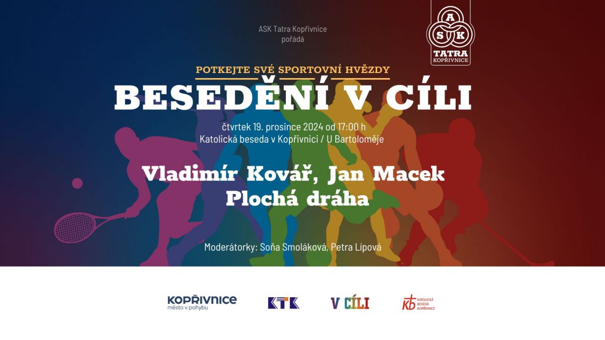 Naše kluby V současné době je součástí ASK Tatra Kopřivnice 15 klubů s členskou základnou 340 členů. Pět klubů je závodních, dalších 10 klubů se sportu věnuje rekreačně. Závodní kluby Vzpírání Šachový klub Stolní tenis Karate klub Boxing Rekreační kluby Sportovní přípravka Senior klub Klub vodní turistiky Klub plavání Futsal Horolezecký klub Děti na startu Capoeira CykloArt bike klub ASPV Kopřivnice Aktuality 11. epizoda podcastu V CÍLI s Miroslavem Bajgarem: Z kopřivnického družstva až do jihokorejského Soulu 11.