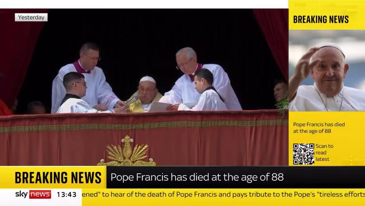 Brenden Thompson speaking to @SkyNews this afternoon on the life and legacy of Pope Francis who died earlier today (Easter Monday) aged 88 at Casa Santa Marta, Vatican City. https://t.co/toOh9EUUql (tw)