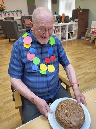 Congratulations to Val and Peter, who recently celebrated their 65th wedding anniversary 🎉💙 Peter is one of our day club members and was delighted - thank you to Val, who kindly baked a delicious cake to share 🍰 (fb)