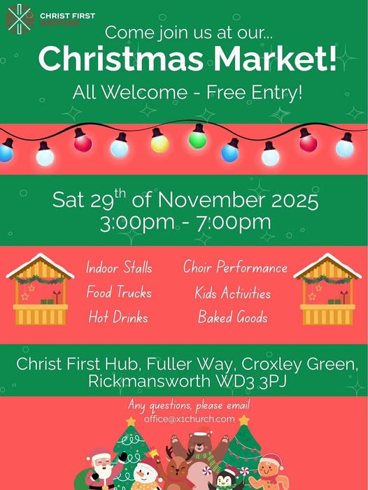 We are so excited to announce that Christ First are doing a Christmas market this year! ❤️🤍 Please share and invite your friends! #croxley #christmasmarket (fb)