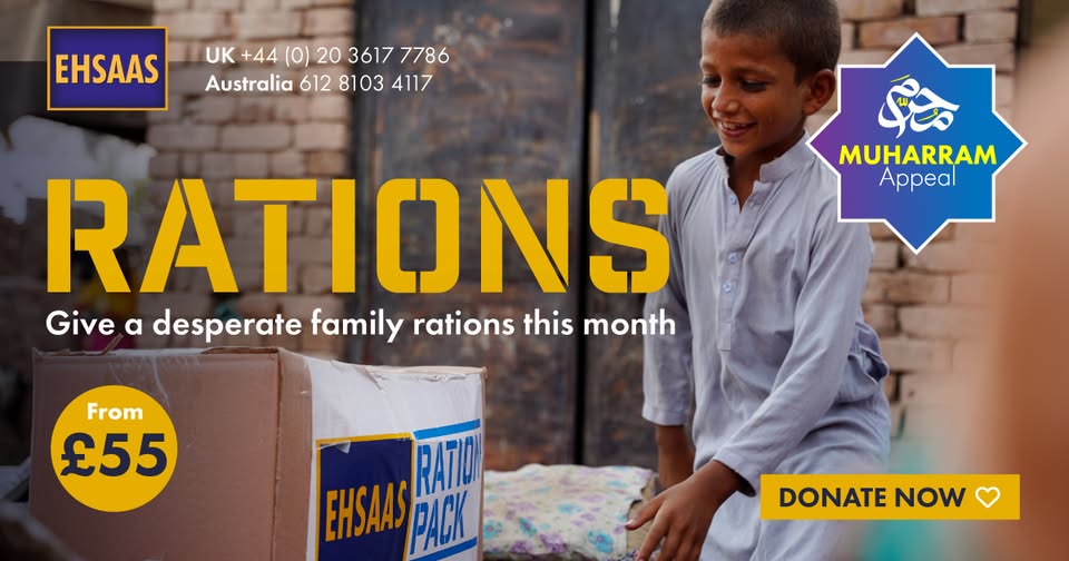 MUHARRAM APPEAL One of our Muharram Projects is to provide Monthly Rations to needy families. To date 12,000+ Families have been given monthly rations helping over 72,000 people. We have many families on our books that need your support. Please help us to provide them with Ration Packs Donate Now: https://www.ehsaastrust.org/projects/muharram/ Donation Line: +44 (0) 20 3617 7786 #rations #jummah #ehsaastrust #muharram (fb)