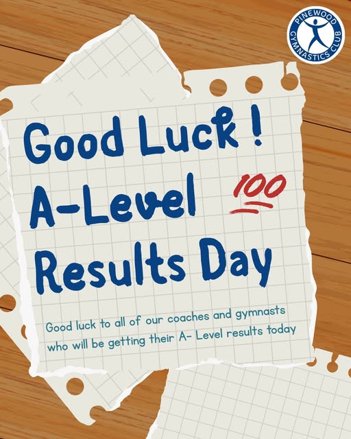 Good luck to all of our coaches and gymnasts who will be getting their A- Level results today! 🍀 We've got our fingers crossed 🤞🤞 (fb)