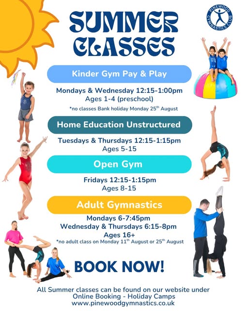 Have you booked onto one of our summer classes ? We also have ... ☀Summer camps Monday-Friday 9-12pm or 9-4pm Our camps include games, arts and crafts, outdoor activities and most importantly lots of gymnastics! 🤸🏽♀️ Private lessons are also available to book ! These are perfect for Gymnasts, Cheerleaders and Dancers who: ✅ Want to boost confidence in their gymnasts skills ✅Want personalised coaching - have the opportunity to focus on specific skills ✅ Want to learn new skills (fb)