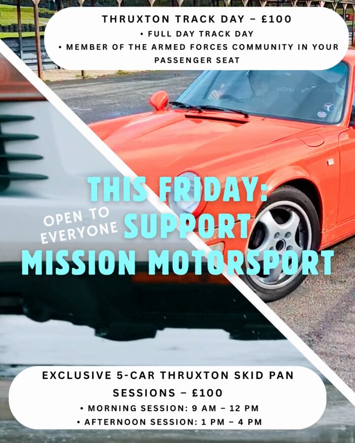 Support @MissionMotorspt this Friday! 🚗 £100 Full Track Day at Thruxton – drive the UK’s fastest circuit & host a Forces passenger. 🚘 £100 Skid Pan Session – sharpen low-grip skills. Sign up: Track 👉 https://t.co/1DKgaehLF7 Skid 👉 https://t.co/fvLLxJYcsY #RaceRetrainRecover https://t.co/Eitshdzaji (tw)