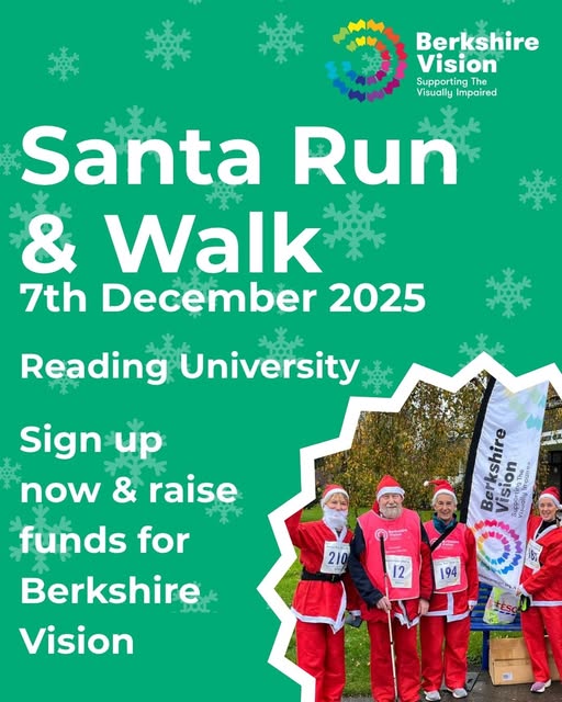 The Santa Run is back! Join Team Berkshire Vision for this year’s Rotary Reading Santa Run on Sunday, 7th December at the Reading University Campus. Run, walk or skip your way to the finish line and help us spread festive cheer all while supporting blind and visually impaired children and adults across Berkshire. -Santa suits included (except under 5s) -All ages and abilities welcome -Minimum £15 fundraising to cover entry Sign up by 20th November to secure your place. -Register by emailing matthew.thomas@berkshirevision.org.uk -Or donate to our team: https://www.justgiving.com/campaign/bv-santa-run-25 (fb)