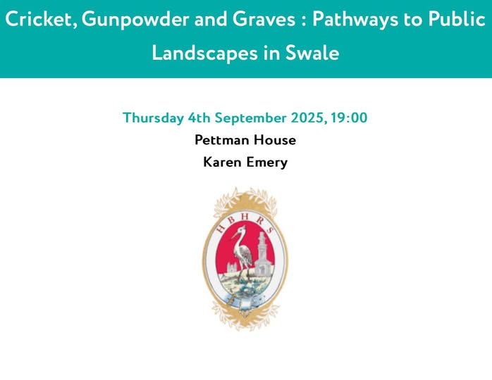Our latest Herne Bay Historical Records Society local history talk takes place on Thursday 4th September. This month we are very pleased to welcome Karen Emery to Pettman House to present her talk entitled ‘Cricket, Gunpowder and Graves : Pathways to Public Landscapes in Swale’ If you have ever wondered how some of the parks, green spaces, and community areas that we all enjoy in our local area have come to exist as they are today, Karen’s talk promises to give a fascinating insight into some of the stories and history behind this. Using recent research by the Kent Gardens Trust into many of these sites, including parks, cemeteries, a former gunpowder works and a medieval moated site, Karen’s talk reveals the fascinating history that links the provision of these green spaces to the social and economic history of the region. If you would like to join us for this talk at Pettman House, Wimereaux Square, the doors open at 6.30 and the talk itself will begin at 7.00 p.m. All are welcome, entry is free for members and just £3 for visitors. #buyinthebayhb Buy in the Bay (fb)