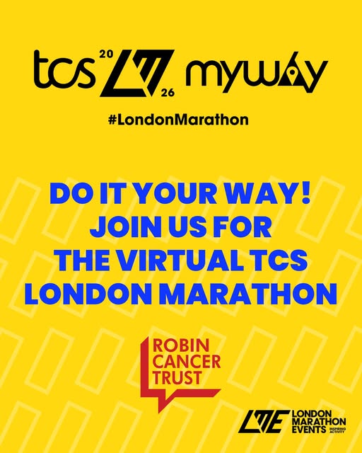 📣 Complete the 26.2 miles in whichever way works for you, and help The Robin Cancer Trust continue to save lives! 🏃♂️ The TCS London Marathon MyWay sees thousands of people taking part in the world's biggest marathon event from wherever they are on the planet - at the same time as the mass event happening on the streets of London. ⭐ Complete the 26.2 miles in whichever way works for you, and help The Robin Cancer Trust continue to save lives! We have four official charity spaces available, so please fill out the form on our website if you'd like to apply. 👏 The TCS London Marathon MyWay will take place on Sunday 26 April 2026, will you be joining us? Visit our event page now! https://www.therobincancertrust.org/event-details/2026-tcs-london-marathon-my-way (fb)