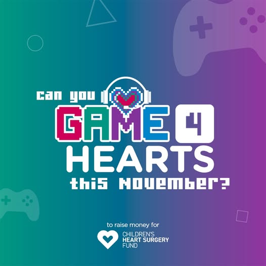 We’re calling for all gamers, from novice to expert, to join our virtual gaming challenge to raise vital funds for CHSF this November 🎮👾💚 Take your pick from consoles, board games or quizzes, solo, duo or group games: - Set yourself a marathon challenge, one that pushes your gaming skills to the max - Take on a chosen mission (with this side quest to raise life-saving donations!) - Go offline completely and host a quiz or board game tournament We have a host of resources to help you succeed! Find out more and sign up here: www.chsf.org.uk/game4hearts 🔗 #Game4Hearts (fb)