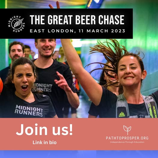 Midnight runners in London are doing a fun run to fundraise for us! ⭐️🙏🏼 A team event that combines beer, running and challenges - all running abilities welcome 🏃🏼♀️🏃🏽🏃🏼♂️ if you don’t fancy running join us for the beer bit 🍻☀️ eventbrite link in bio - see you there! #midnightrunners #greatbeerchase #london #pathtoprosper #fundraisinglondon #eventbright (fb)