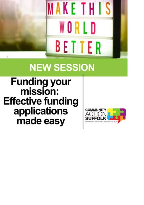 Getting funding is more difficult. So we’ve created the answers. Join our Funding Made Easy course – see details and the booking link below. You can’t afford to miss it. Plus, learn how to optimise the running of your organisation, save money and improve end user delivery through our effective strategic planning course. _________________ Effective Funding Applications Made Easy This session will be delivered in person in Ipswich. The training is designed to equip charities with effective strategies for applying for funding, and how to avoid common pitfalls. By the end of the session you will: • Understand the funding landscape: Gain insights into various funding sources and their requirements. • Develop a winning strategy: Learn how to align your project goals with funders’ priorities. • Master the art of writing: Acquire skills to write clear, persuasive, and impactful applications. • Avoid common pitfalls: Identify and overcome common mistakes that can hinder your success. For more information and booking, please use this link: https://www.communityactionsuffolk.org.uk/casevent/3659/ _________________ Effective Business Planning For Voluntary Organisations Training via Zoom The event will guide voluntary organisations through the process of strategic business planning, helping to develop actionable and sustainable plans. Participants will explore how to think strategically, set clear goals, and implement effective planning techniques to achieve long-term success and positive community impact. Key takeaways will be: • Understanding the importance of strategic thinking in organisational planning • Developing a comprehensive business plan tailored to your organisation’s mission and vision • Learning practical steps for setting clear and measurable objectives This session is ideal for individuals involved in the management or leadership of voluntary organisations. For more information and booking, please use this link: https://www.communityactionsuffolk.org.uk/casevent/3656/ (fb)