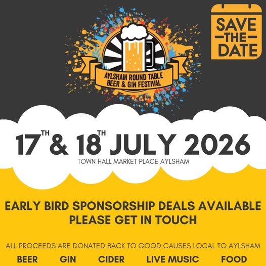 After yesterdays announcement of the incredible amount raised by this year's Beer Festival there's only one thing left to do..... Start planning for next year!! 😁😁 That's right, Aylsham Beer Festival will be back on the 17th and 18th July 2026, so save the date now! 📅📆 We will still need your help to make it bigger and better than ever, so if you were one of this years fantastic sponsors or someone who has seen what we do and wants to get involved, get in touch and see what early bird sponsorship deals we have available!! 👏🏻👏🏻⭐⭐ (fb)