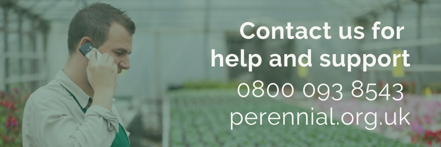 Helpline 0800 0938543 Sorry we are closed view opening times Helpline 0800 0938543 Sorry we are closed view opening times Perennialx27s gardens Our award winning gardens offer a kaleidoscope of textures shapes and colours and are waiting for you to visit and explore. How we help Whether you work with plants trees flowers or grass if you work in horticulture or even if youve retired were always here to help build better futures for you and your family. Perennial is the UKs only charity dedicated to helping people in horticulture and their families. Ways we help Advice information and support Were here for confidential support and advice anytime you need it.