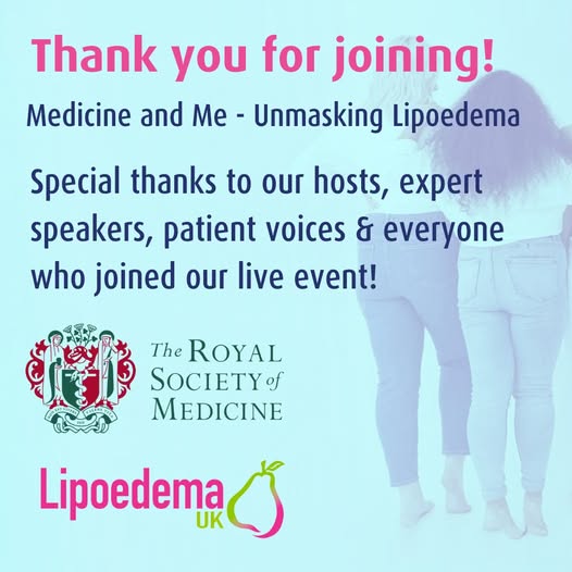 ✨ THANK YOU ✨ To everyone who joined Medicine and Me: Unmasking Lipoedema We’re especially grateful to all the contributors, clinical experts, and the inspiring individuals who shared their personal stories of living with lipoedema. Your voices are helping to break stigma and push for change. And of course, a special thank you to the Royal Society of Medicine for hosting such an amazing event. Together, we’re raising awareness, building understanding, and creating hope for the future. 🎥 For those that couldn't join us at the live event, the recording will be available once editing is finalised, this will be emailed out to pre-registered participants once it’s complete. #UnmaskingLipoedema #MedicineAndMe #LipoedemaAwareness (fb)