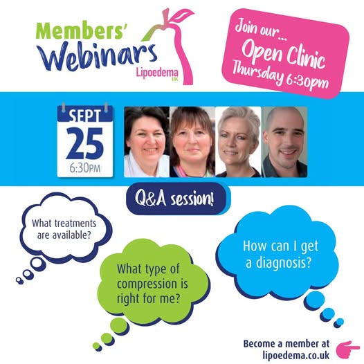 ✨ Ask the Experts: Open Clinic Q&A is back this week! ✨ Our fantastic Clinical Advisors are hosting the next members’ Open Clinic this Thursday 25th September at 6:30pm! ⏰ These sessions are a safe and supportive space to: 💬 Ask lipoedema-related questions 🩺 Get expert guidance 🌸 Connect with others living with lipoedema 📌 Please note: Clinics are live and not recorded to protect member privacy. 👉 Join our membership today to take part: https://ow.ly/Uv4050X04vU #Lipoedema #LipoedemaSupport #LipoedemaAwareness #LipoedemaCommunity (fb)