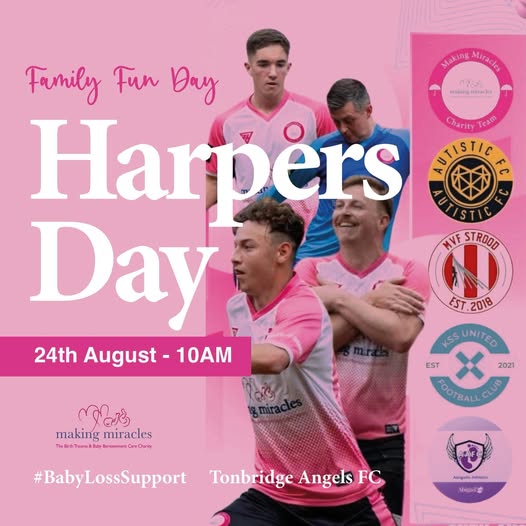 Family Fun Day 💗 TODAY 💗 Jack and Melissa started ‘The Making Miracles Charity Team’ in memory of their daughter Harper. The football team offers the opportunity to meet other grieving families and do something for you. It’s so important to look after your mental and physical health especially in grief. Every year in August The Team hold ‘The Harpers Cup’. It’s a family fun day in memory of Harper. Please join us for our family fun day in memory of Harper. 📆 Sunday 24th August 2025 🕙 From 10am 📍 Tonbridge Angels Football Club (The Halcyon Wealth Longmead Stadium, Darenth Avenue, Tonbridge, Kent TN10 3JF) Bouncy castles Food & Drink Raffle Football And much more 🎟️ Free entry Find out more here: https://makingmiracles.org.uk/football-team/ (fb)