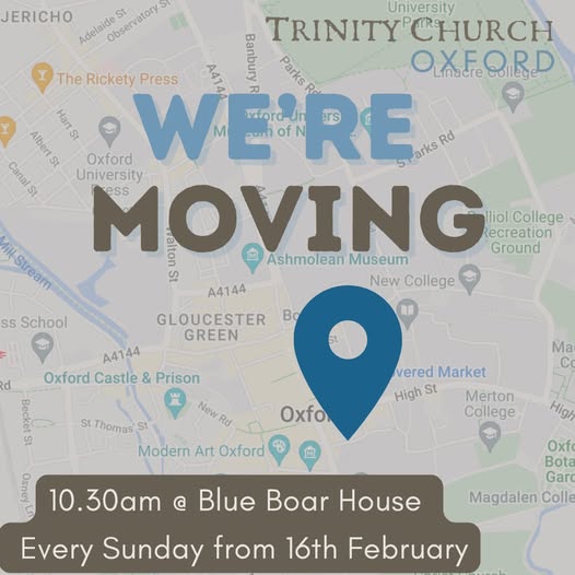 ➡ We're moving (again)! ➡ While meeting at St Michael at the Northgate on a Sunday evening has been a blessing in many ways, we are really excited to return to Sunday morning services! From the 16th February (this coming Sunday!) we will be meeting at 10.30am at Blue Boar House, 5 Blue Boar Street, OX1 4EE. We'd love to see you there! (fb)