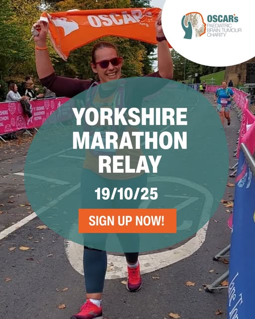 All the fun of the marathon without all of the distance! We need teams of six to run relay legs of the Yorkshire Marathon on 19th October 2025. Will you and your friends, family or work colleagues join together to make a difference and help raise money to support children affected by brain tumours. Head to oscarscharity.org/events/yorkshire-marathon-2025 to learn more or contact amy@oscarscharity.org #oscars #charity #OscarsCharity #braintumoursupport #yorkshire #marathon #york #marathontraining #relay #5k (fb)