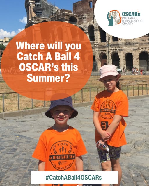 Take #CatchABall4OSCARs on your travels this summer. Whether you are off to the beach, climbing a mountain, seeing the sights in Asia, on a family holiday in Europe or the UK or sunning yourself in the back garden, grab your OSCAR's t-shirt and attempt the Catch a Ball challenge for OSCAR's Charity somewhere amazing. We have already had attempts in Italy, Greece, Slovenia and Morocco - where can you take the #CatchABall4OSCARs challenge this summer? Help us raise awareness for paediatric brain tumours and support children and families too. Remember to donate, and tag and challenge 4 of your friends to try it too! Find out more at oscarscharity.org/catch-a-ball #oscars #charity #oscarscharity #BrainTumourAwareness #CatchABall4OSCARs #tshirttravels (fb)