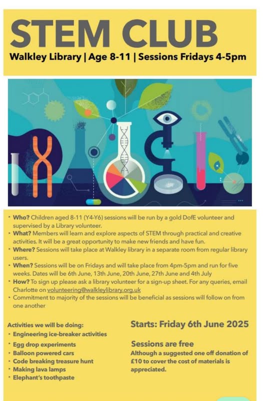 From this Friday we are running a set of free sessions of our Science, Technology, Engineering and Math Club. The session runs from 4-5pm and they are for Year Groups 4 - 6 (aged 8 to 11). Please see the poster for further information. There are five places left! (fb)