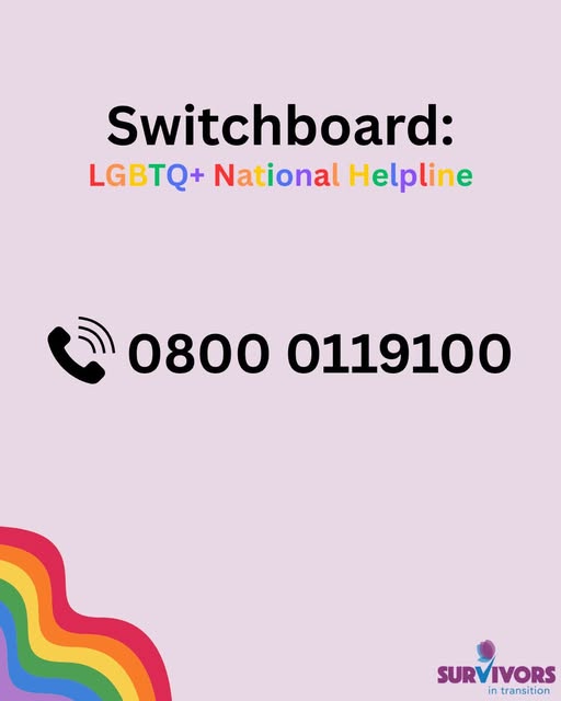 🏳️🌈 Need someone to talk to? You’re not alone. Call Switchboard: LGBTQ+ National Helpline 📞 0800 011 9100 – free, confidential, and here for you. #LGBTQSupport #YouAreNotAlone #MentalHealthMatters #SwitchboardHelpline (fb)