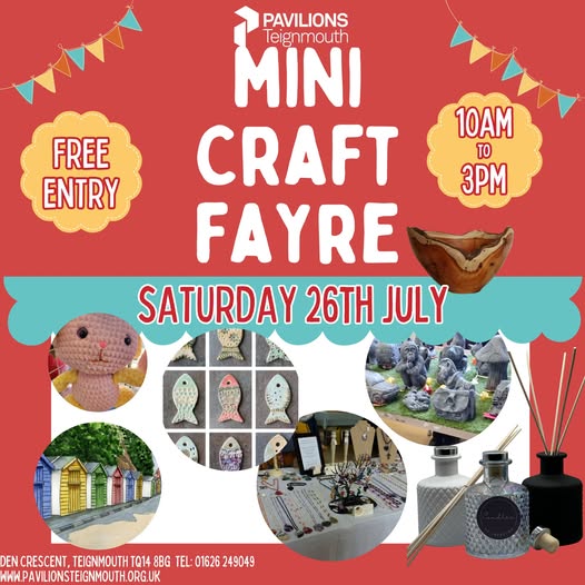 Join us here next Saturday 26th July for our monthly Mini Craft Fayre! We will be open from 10am to 3pm, make sure to come down and check out this months selection of fabulous local artists and makers! Free Entry! (fb)