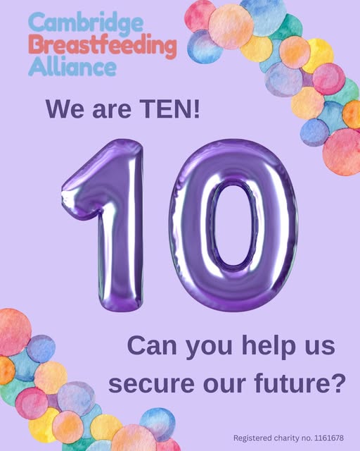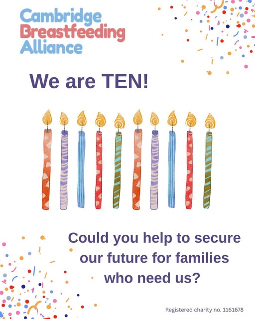 It’s our 10th birthday! Over ten years, we have supported THOUSANDS of families. Many have babies less than a week old - and families tell us how vital Cambridge Breastfeeding Alliance is to them. BUT our future is not secure. We are small charity. Could you help secure our future by giving us a 10th birthday present? 🥰❤🎉 Please donate now: https://shorturl.at/Khbib (fb)