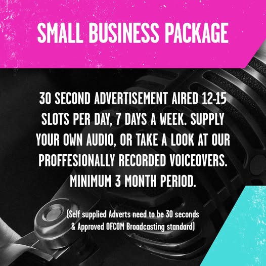 Boost your business with our Small Business Package! ✅ 30-second ads aired 12–15 times daily ✅ 7 days a week for consistent reach ✅ Supply your own audio—or choose from our professionally recorded voiceovers ✅ Minimum 3-month commitment for real results Make your brand heard — with high-frequency airtime that fits your budget. DM us today to get started! (fb)