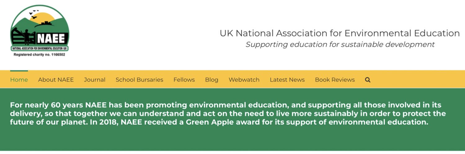 UK National Association for Environmental Education Supporting teachers and learners across the UK NAEE has been promoting environmental education in the UK for 50 years supporting all those involved in its delivery so that together we can understand and act on the need to live more sustainably in order to protect the future of our planet. NAEE received a Green Apple award for its support of environmental education. Blog NAEE Blog . By Professor Justin Dillon President NAEE .