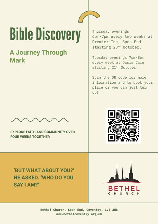 Our Bible Discovery group at Oasis Cafe continues tonight at 7pm! Explore faith and community over four weeks together at our Bible Discovery group here every Tuesday evening, or at Premier Inn on alternate Thursday evenings (with an earlier 6pm start - continues next week). It could change your life! ✝ Scan the QR code to find out more. #discoverybiblestudy #bible #community #faith #love (fb)