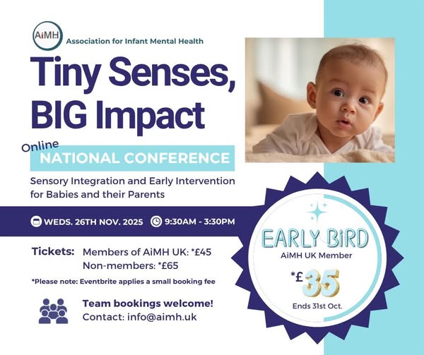 ⏰ Last day to secure your Member Early Bird Tickets! If you're planning to join us for the AiMH UK National Conference - 'Tiny Senses, Big Impact' now’s your final chance to grab Member Early Bird tickets at a discounted rate. Connect with leading experts, deepen your practice, and help shape the future of infant mental health. We can't wait to welcome you for a day of inspiration, learning, and connection 💛 Secure your place: https://AiMHUKNationalConference2025-TinySensesBigImpact.eventbrite.co.uk (fb)