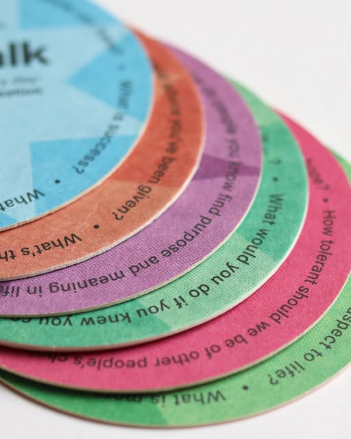 Coming soon: Table Talk Coasters Pre-order a set to be the first to get them: https://uglyducklingresources.org/products/table-talk-coasters (fb)