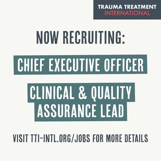 Could this be your opportunity to shape the future of Trauma Treatment International? We currently have two vacancies at TTI for our new CEO and our Clinical & Quality Assurance Lead. Our outgoing CEO, Quen Geuter says: “After four incredible years as CEO of Trauma Treatment International, I'd like to share a significant update about my role with the charity. “It's been an absolute privilege to lead this amazing organisation, and I'm incredibly proud of everything we've accomplished together, especially developing our strategic direction for the future. This strategy will be launched in the coming months. “I will soon be stepping down as CEO but I won't be going far. I'll be joining TTI’s Board of Trustees, where I'll continue to support our mission and work closely with the incoming CEO to ensure a smooth transition and champion the strategy we've built. “Thank you to every one of you – our dedicated team, partners and supporters – for your unwavering commitment to our vital cause. I'm really excited about Trauma Treatment International’s next chapter and look forward to contributing to its work in a new capacity.” Applications close for the CEO role on June 30. Meanwhile, we are also looking for a new Clinical & Quality Assurance Lead due to the departure of Dr Lotta Raby, who has shared what an honour it has been to support staff and beneficiaries in our partner organisations, and to work alongside such a compassionate and skilled team at TTI. Applications for the Clinical & Quality Assurance Lead vacancy close on July 5. (fb)