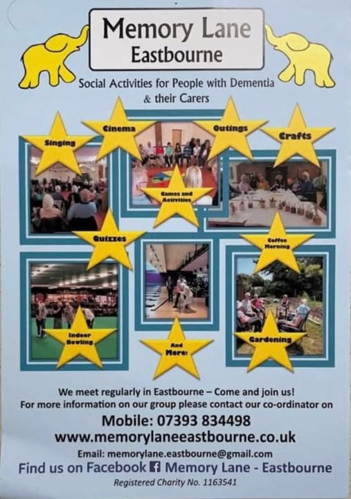 Memory Lane have a range of activities for those living with Dementia and their Carers. Most of the events are held at the Church Hall of Christ the King, unless stated otherwise. 🔸 On the 1st Tuesday of every month there is the Dementia Friendly film at the Towner Cinema. 🔸 On the 2nd, 4th and 5th Wednesdays it’s singing with Sharon. 🔸 The 2nd Friday is 10-Pin Bowling at the David Lloyd club. 🔸 The 3rd Wednesday is Fun and games with Defiant Sports. 🔸 The 3rd Saturday is Saturday Club which includes soup, a roll and a sandwich. 🔸The 4th Friday is a meet up at Helen Gardens at 2pm on the seafront near Bedes school. There is the option of petanque, putting or just come along for a chat. For more information, please call 07393 834498. #dementia #eastbournedementia #eastbourne #eastbournelocal (fb)