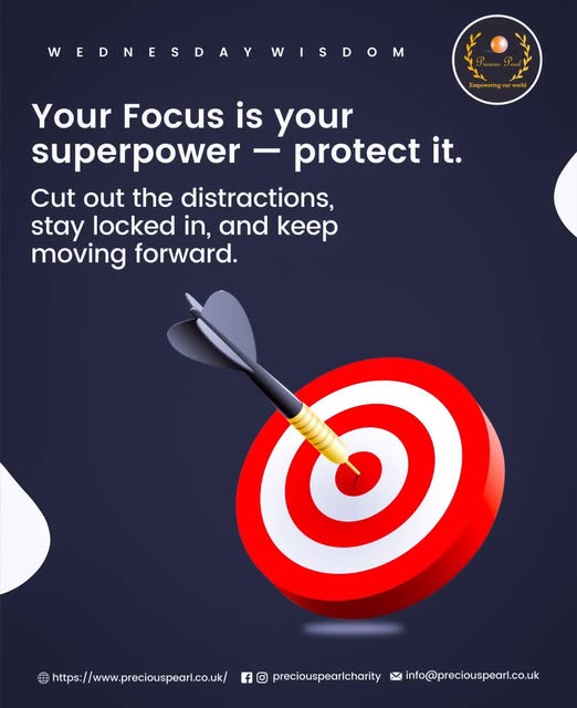 Your focus is your superpower — protect it. ✨ Cut out the distractions, stay locked in, and keep moving forward. Every small, focused effort builds momentum toward something great. #Focus #Goals #Productivity #Success #PreciousPearlsCharity (fb)