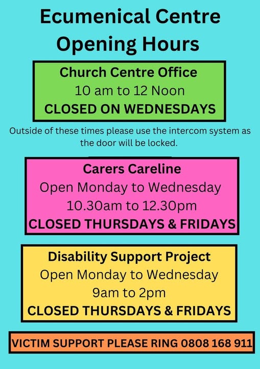 Please note our new opening days and times (including phone lines) Monday 9am-2pm Tuesday 9am-2pm Wednesday 9am-2pm Thursday - Closed Friday-Closed (fb)