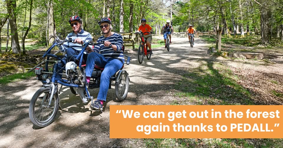 "We can get out in the forest again thanks to PEDALL." ✨ Hear from PEDALL regulars Tricia and John, who have reconnected with their passion for cycling over the past two years. PEDALL has helped them stay active and meet new people. "It’s made us use our bodies and meet new friends – it’s very sociable and we’ve been able to connect with some very nice people." 👉 Read more about Tricia and John's PEDALL experience, as well as other stories showcasing how inclusive cycling brings people together: https://www.pedall.org.uk/case-studies/ #CyclingForAll #InclusiveCycling #AccessibleCycling #PEDALL #NewForest (fb)