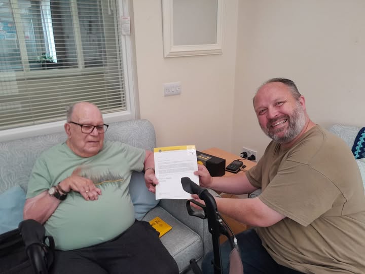 Club President Gareth Dibble visited Lion Lawrence Chaffer this afternoon. Lawrence has been a member for almost 22 years, he was presented with his 20yr membership chevron from Lions Clubs International. Gareth said that the presentation had been delayed due to Covid and some health matters but it was great to finally present this and spend some time chatting. (fb)
